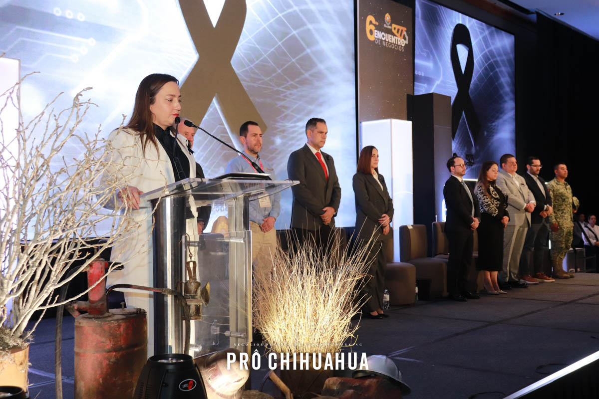 La ceremonia comenzó con el mensaje de bienvenida de la presidenta del organismo, Paola Cázarez Pérez, quien expresó solidaridad ante el momento de duelo que atraviesa la comunidad minera. Desde Chihuahua, manifestó su respaldo a las familias afectadas por los recientes hechos en Concordia y reiteró que la seguridad, la vida y la dignidad deben mantenerse como ejes centrales del sector.
