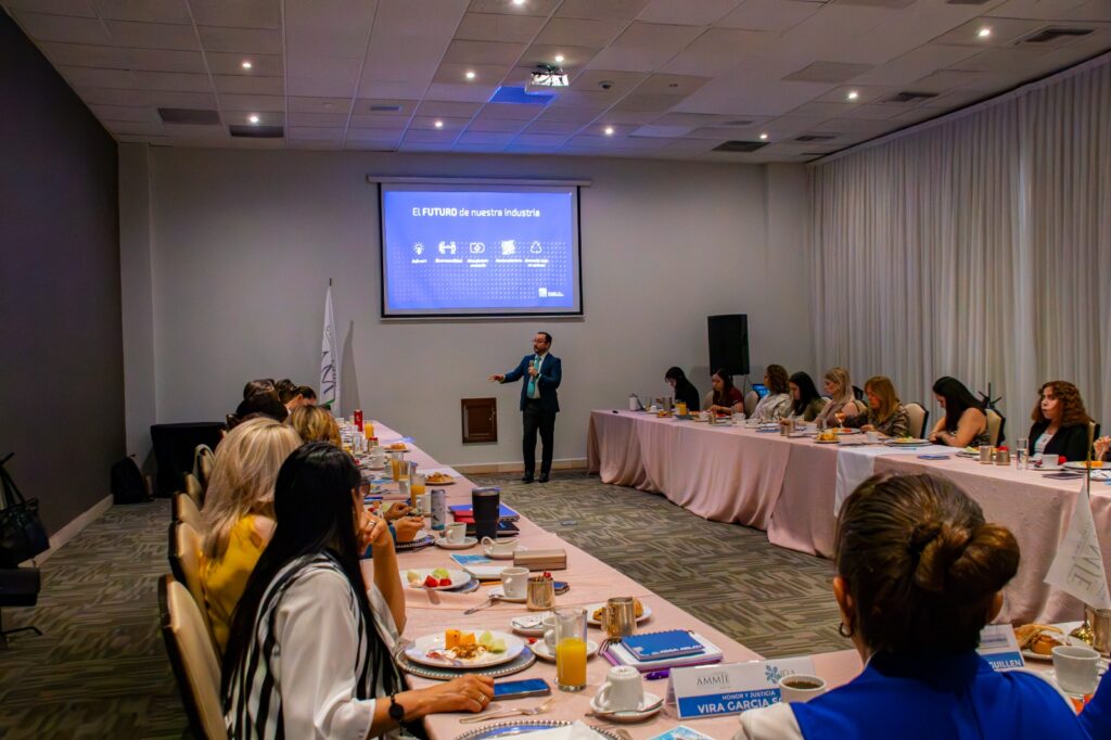 Ulises Fernández Gamboa, titular de la dependencia, expuso ante integrantes de la Asociación Mexicana de Mujeres Jefas de Empresa A.C (AMMJE Chihuahua), las proyecciones para el futuro de la industria y la economía de la entidad, en función de las oportunidades de negocio que han arribado recientemente.