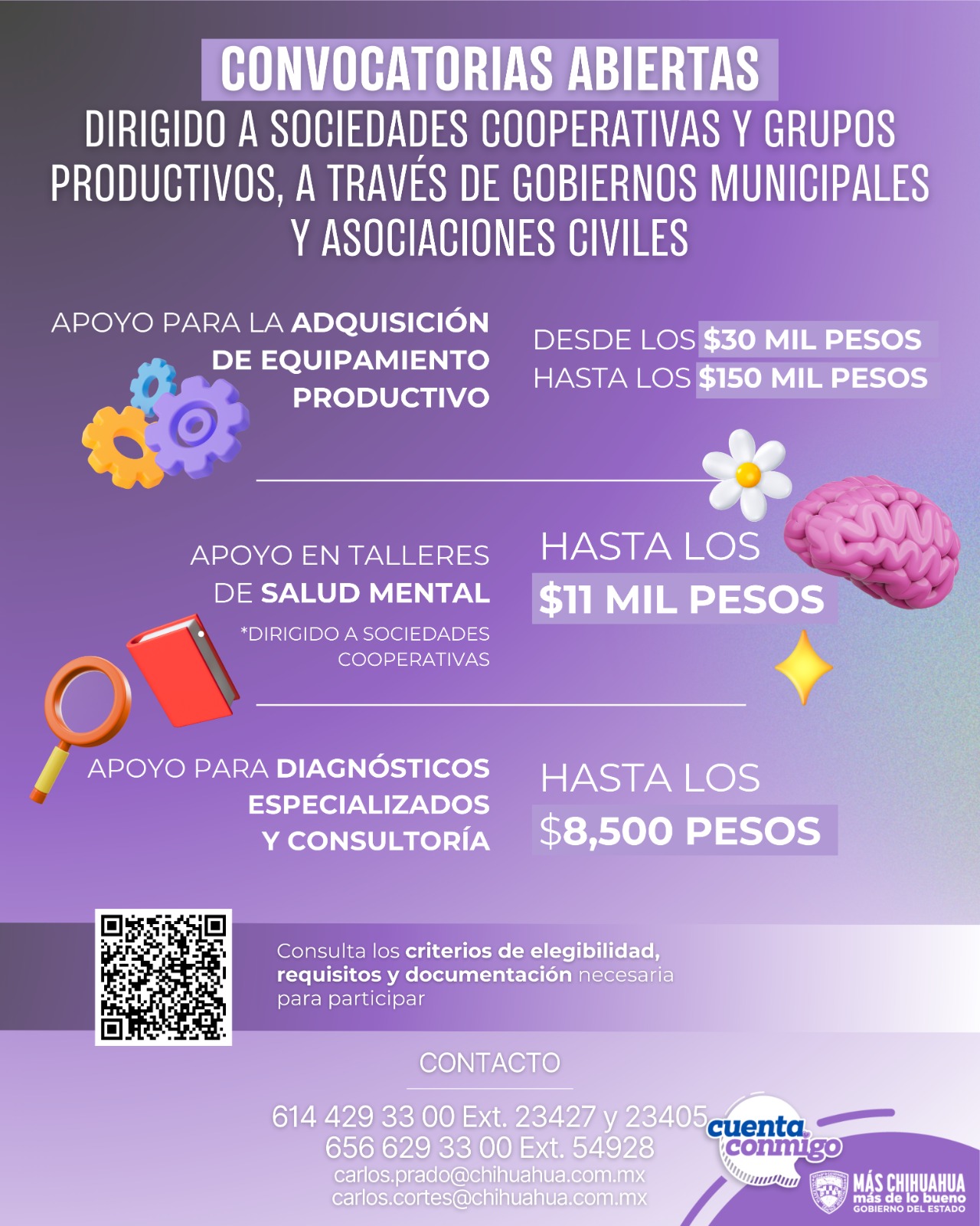 Para mayor información comunicarse con la Dirección de Economía Social al teléfono 614.429.3300, extensión 23427. En Ciudad Juárez al 656.629.3300, extensión 54928.