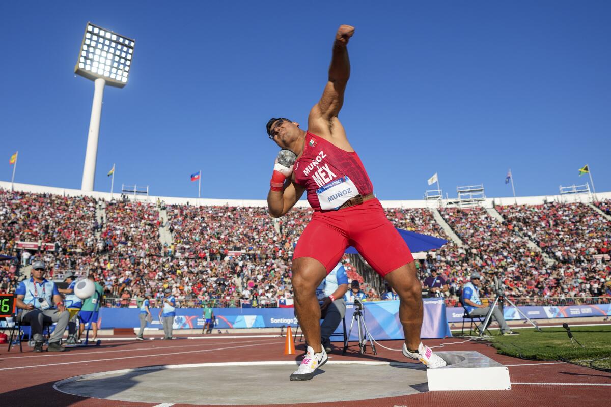 Muñoz Galarza ostenta el octavo lugar a nivel mundial con una marca de 20.88 metros, lo que logró la tarde del sábado ante alrededor de aproximadamente 80 mil espectadores.