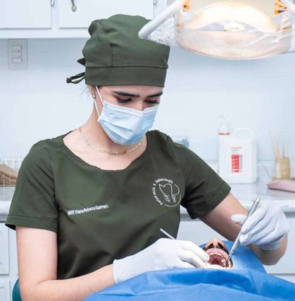 Con ocho años de experiencia en odontología y cuatro dedicados a la periodoncia, su vocación se centra en preservar las estructuras naturales que sostienen los dientes. Para ella, cada caso requiere un analisis detallado, paciencia y seguimiento a largo plazo. A través de tratamientos como limpiezas profundas, mantenimiento periodontal, regeneración ósea, injertos de encía, gingivectomía estética e implantes dentales, busca ofrecer so- luciones personalizadas que devuelvan funcionalidad, salud y confianza a sus pacientes.