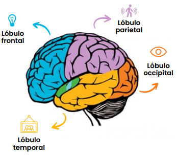 El lóbulo parietal es el de los movimientos, espacios y funciones relacionadas con estos. El lóbulo frontal y el lóbulo prefontal son los encargados de la memoria del trabajo, comportamiento y toma de decisiones.