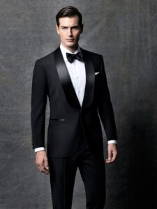 Mientras que los hombres pueden destacar con esmóquines en negro o azul noche.