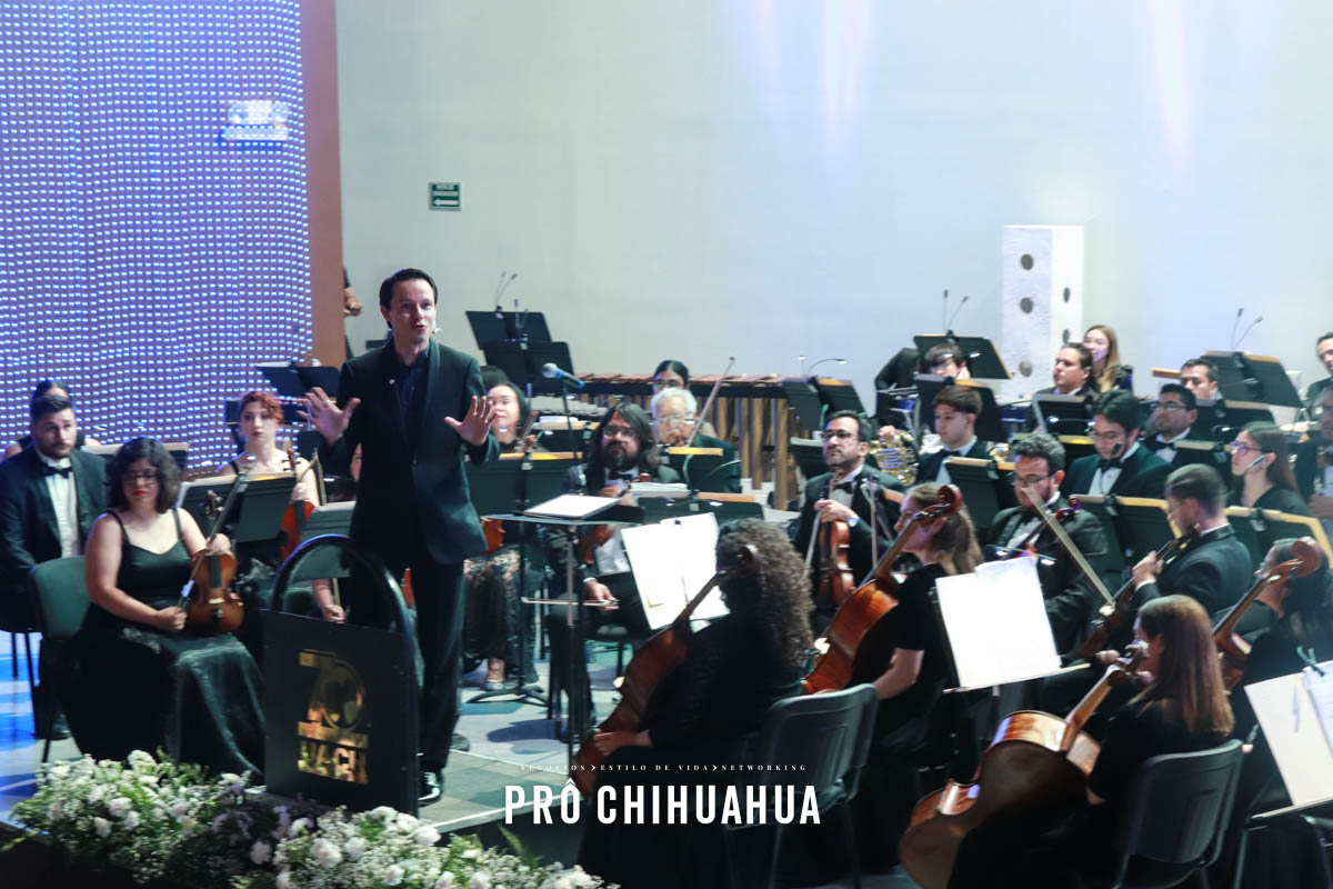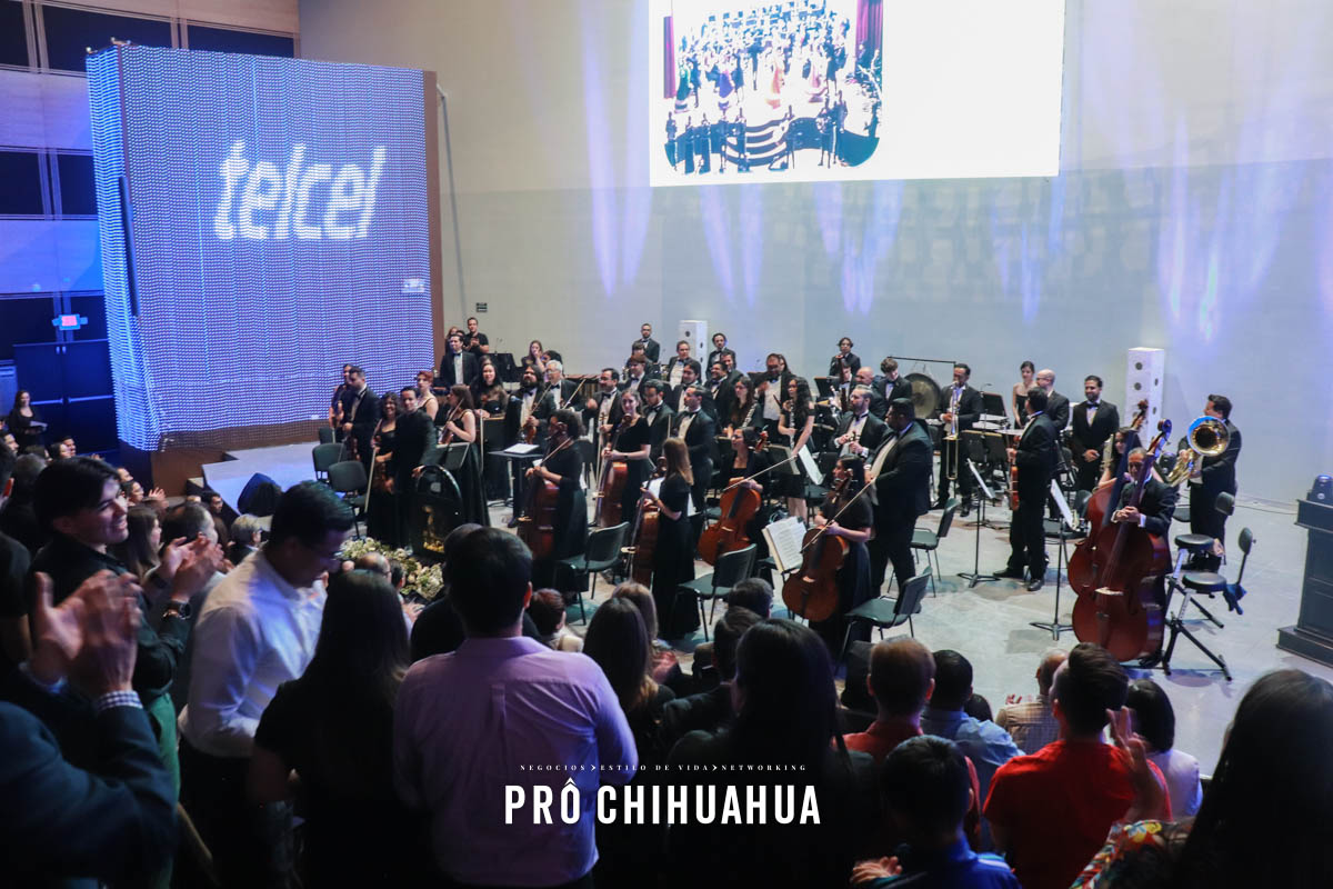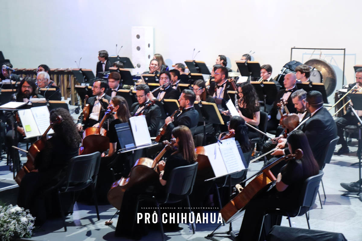 Durante la velada, los asistentes disfrutaron de la participación de la Orquesta de la Universidad Autónoma de Chihuahua, que ofreció un repertorio musical que dio un toque elegante y distintivo al encuentro, generando un ambiente propicio para la convivencia empresarial.