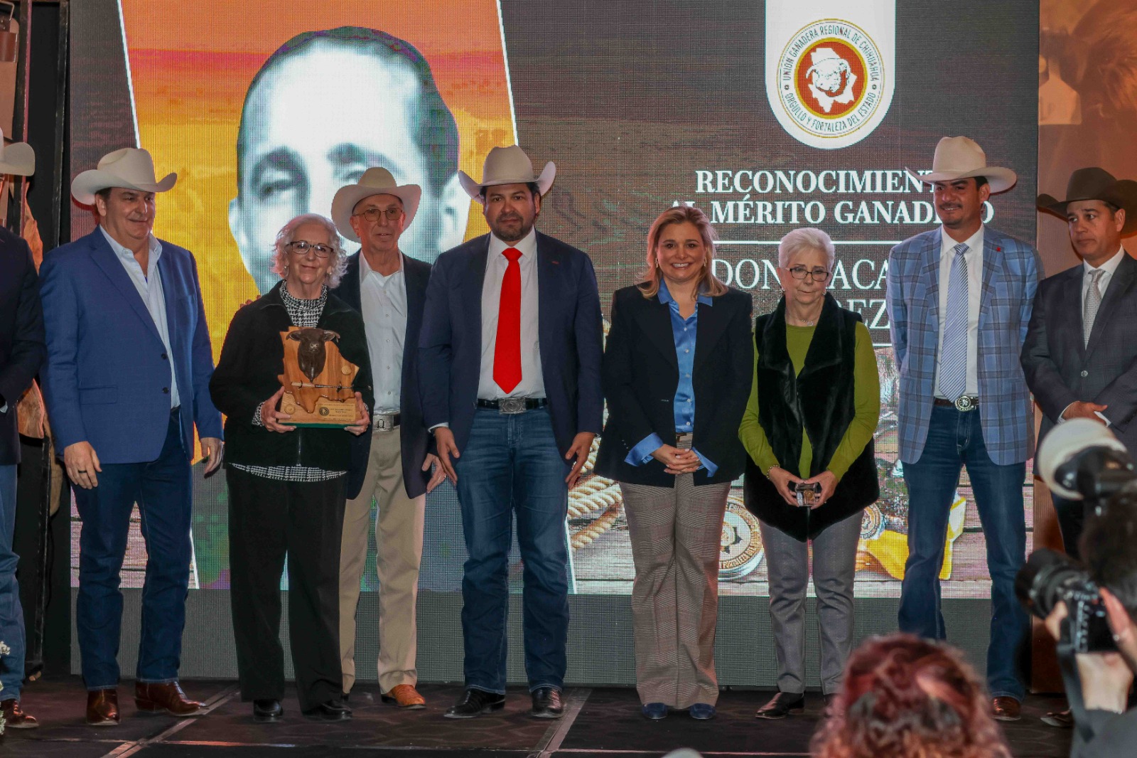 Durante la ceremonia, se entregó la Medalla al Mérito Ganadero a figuras clave del sector en Chihuahua, entre ellas: Macario Pérez Martínez (In memoriam), Octavio Vega Vázquez, Enrique Chávez Pérez, Jay Whetten Burgess, Raúl Carrillo García y Enrique Terrazas Torres.